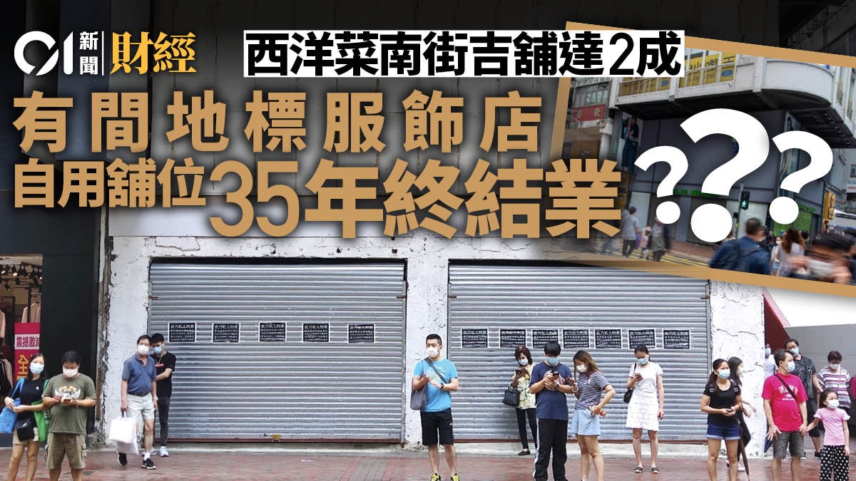 其中,由亞皆老街至奶路臣街的一段西洋菜南街,短短100米內竟然有多達11間吉舖及1間短租舖,屬重災區。最受人注目為多年來經營Texwood 蘋果牌牛仔褲的舖位,位於西洋菜南街與亞皆老街交界的單邊「當眼」位置,面積約1,800方呎,自用長達35年後,終在今年3月初結業,現該舖每月叫租約80萬元,放盤多月暫未聞獲承租。