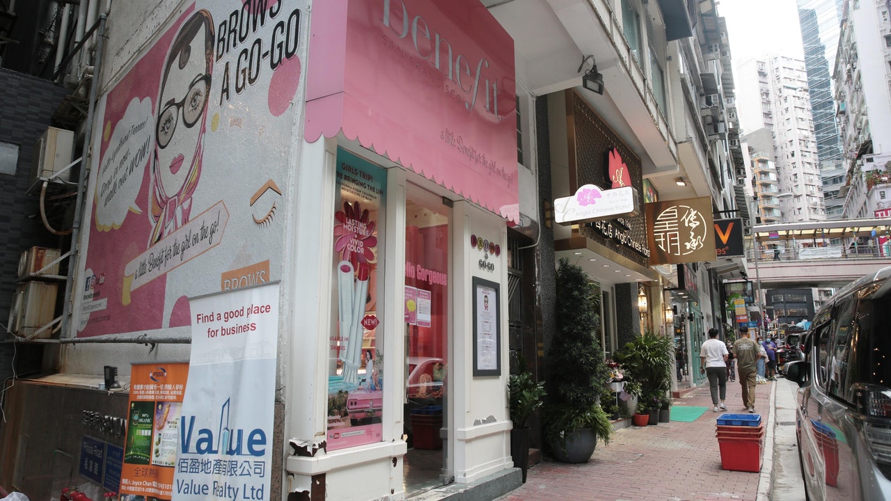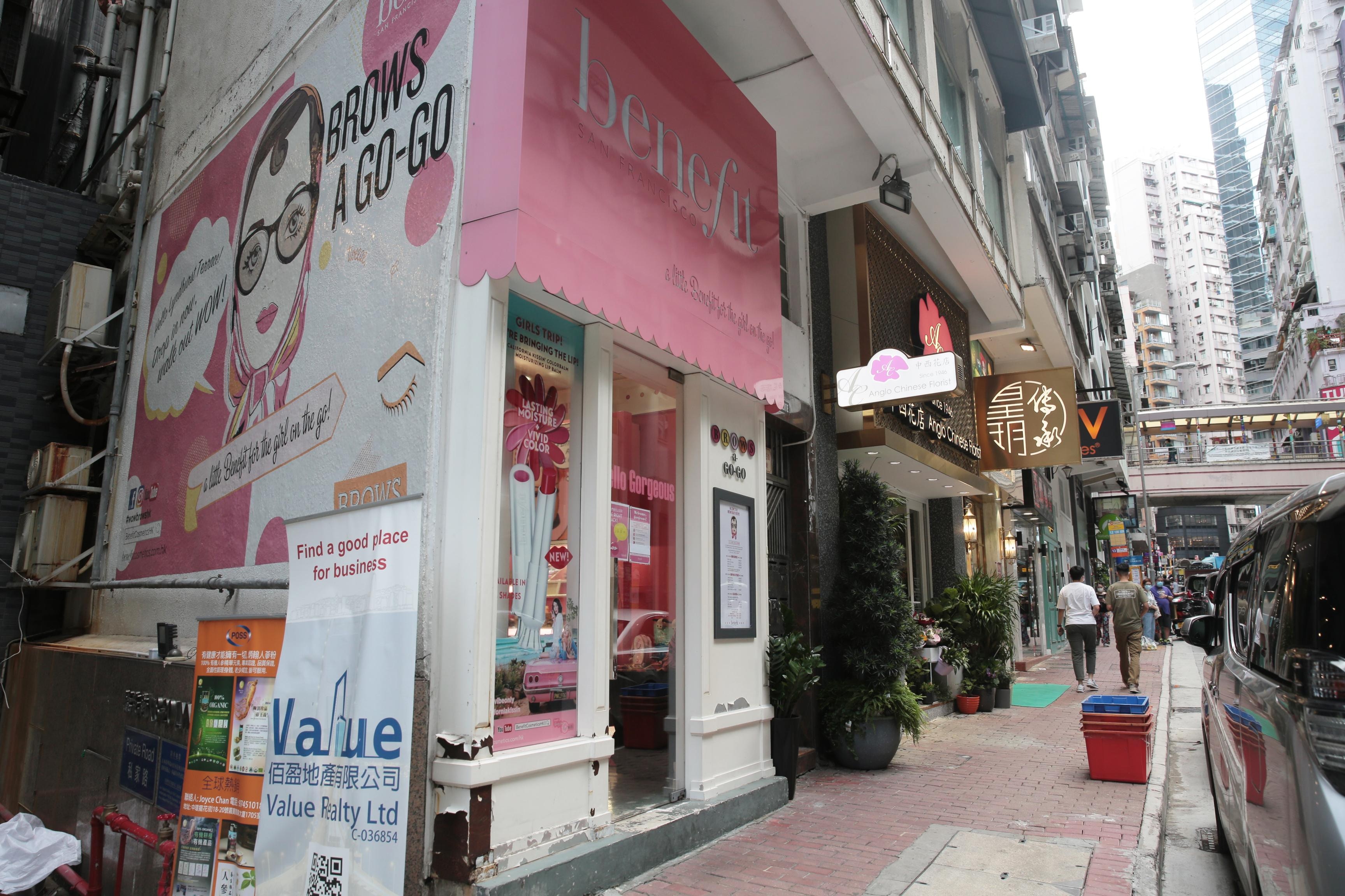古巨基持有的擺花街22號地舖,現由化妝品店Benefit以每月約8.8萬元承租。(李澤彤攝)