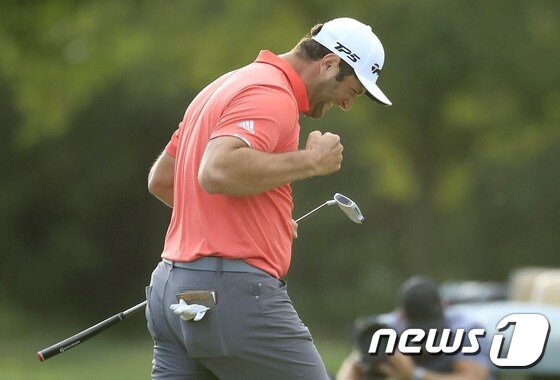 | 욘 람이 지난 8월 열린 BMW챔피언십 연장전에서 20m 버디 퍼트를 성공시킨 뒤 포효하고 있다. © AFP=뉴스1 |