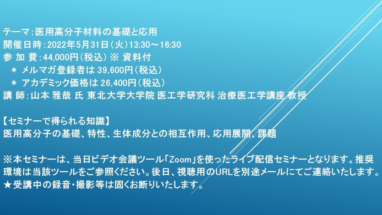 0 Response to "【ライブ配信セミナー】医用高分子材料の基礎と応用 5月31日(火)開催 主催:(株)シーエムシー・リサーチ - PR TIMES"