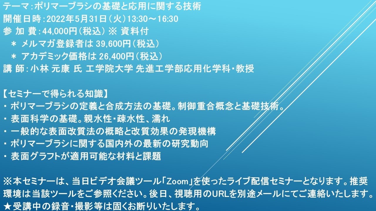 0 Response to "【ライブ配信セミナー】ポリマーブラシの基礎と応用に関する技術 5月31日(火)開催 主催:(株)シーエムシー・リサーチ - PR TIMES"