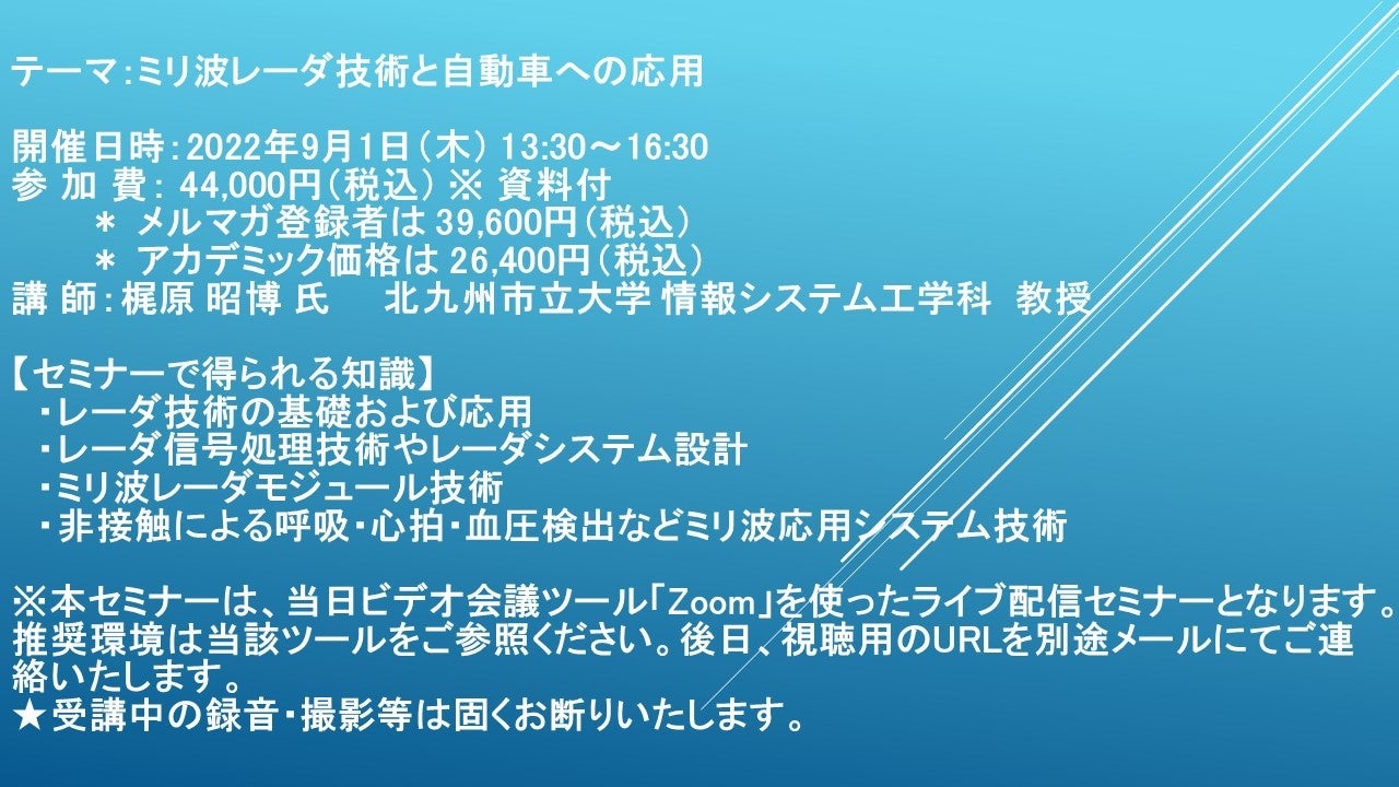 0 Response to "【ライブ配信セミナー】ミリ波レーダ技術と自動車への応用 9月1日(木)開催 主催:(株)シーエムシー・リサーチ - PR TIMES"