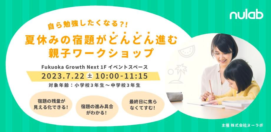 本イベントは、SNSで1,000回以上もシェアされたブログ「バーンダウンチャートで子どもの夏休みの宿題を「マネジメント」した話」を題材にしたワークショップです。夏休み初日の方も多い7月22日(土)に宿題の計画を立てることで、最高のスタートが切れるよう応援します。